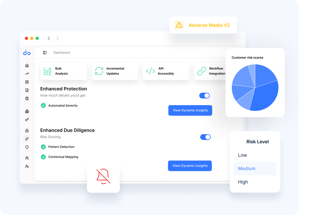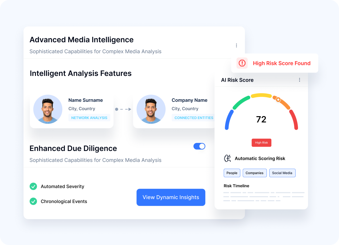 - API Accessibility Programmatic access to adverse media intelligence