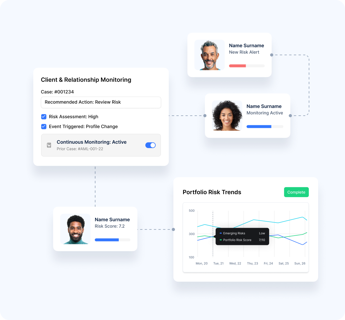 - Risk-Based Intensity Screening depth aligned with entity risk profiles