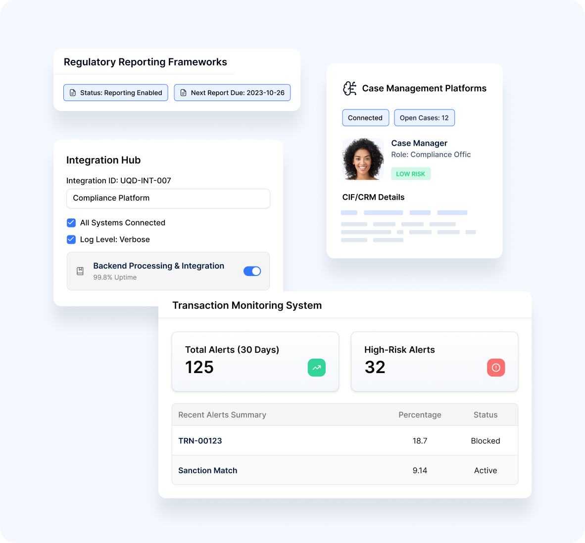- Seamless connection with transaction monitoring systems