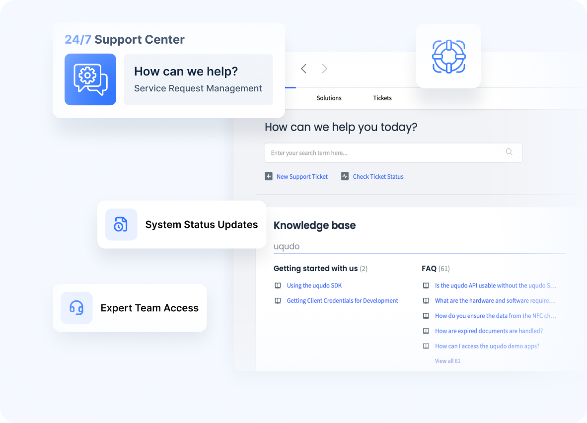 Connect with uqudo's specialists for technical assistance when needed