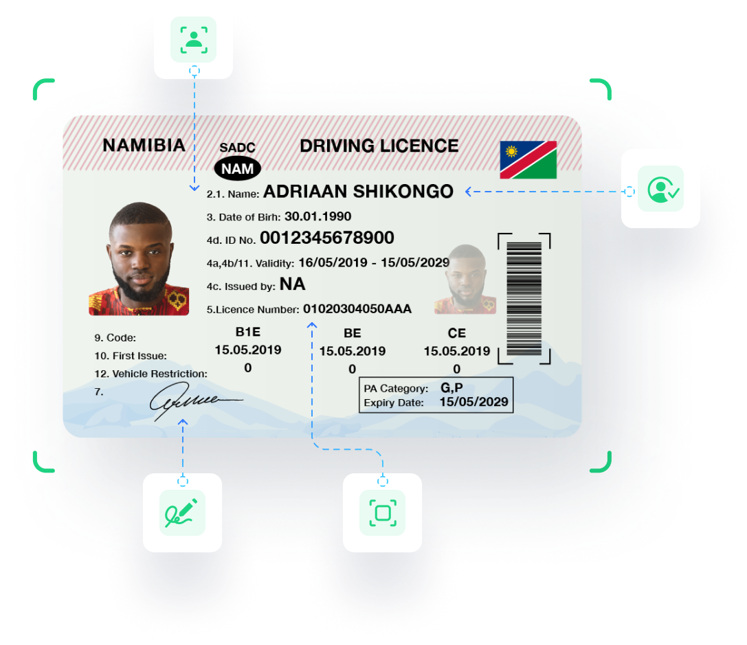 Leverage specialized OCR built for Namibian documents with advanced capabilities and support for the fonts and formats used across Namibian identity documents.