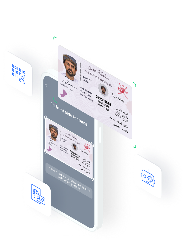 uqudo supports comprehensive verification of Omani National ID cards (with NFC verification), passports (with NFC verification), and driving licenses with AI document scanning technology.