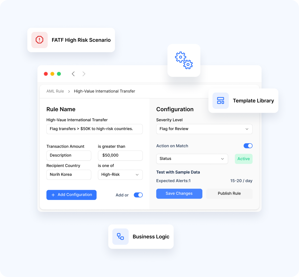 Our platform enables compliance professionals to create monitoring rules without technical expertise: