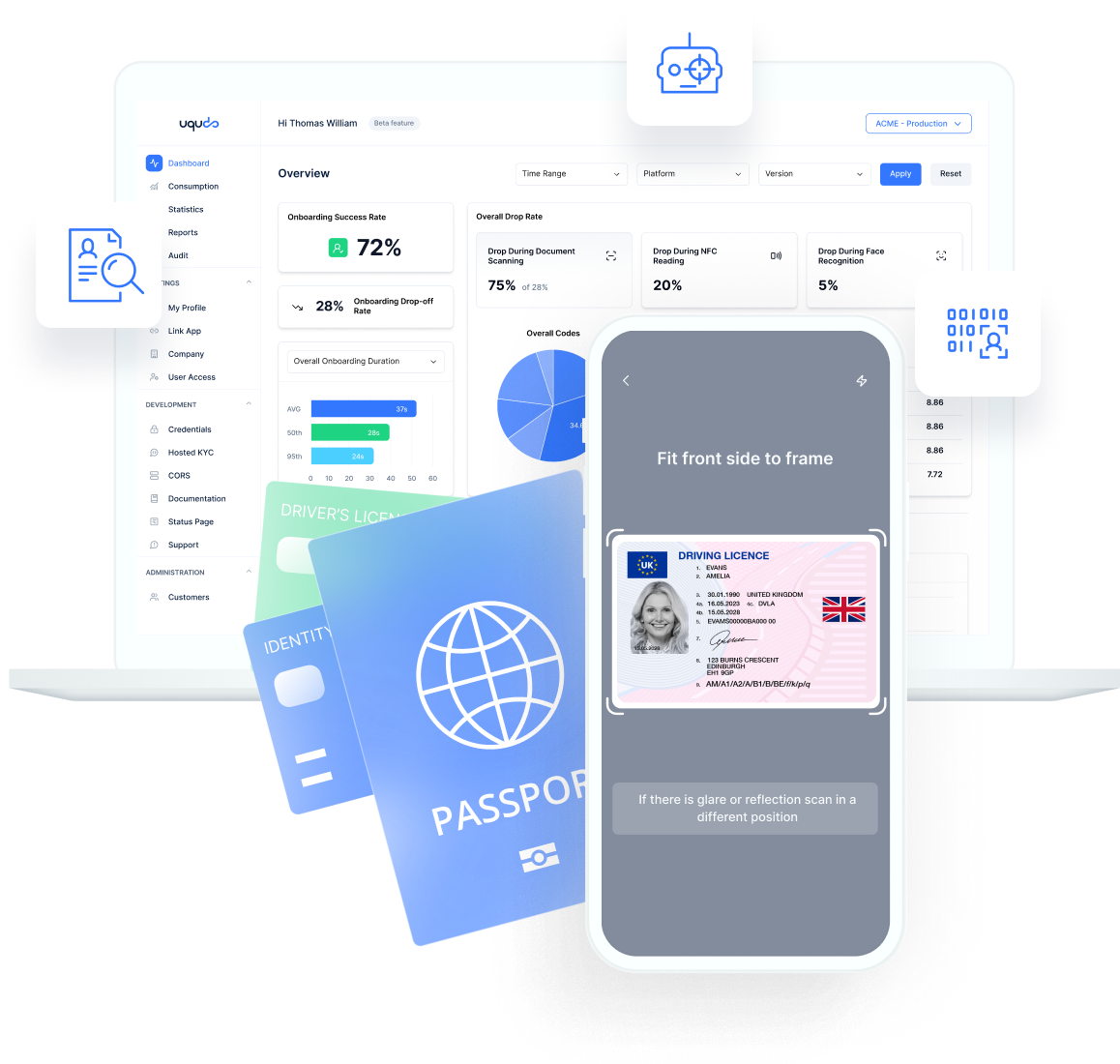 Deliver end-to-end KYC verification service optimized for UK requirements with advanced document validation, NFC verification, biometric matching, and customizable workflows that balance security with user experience.
