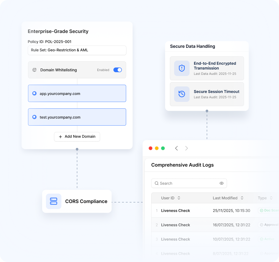- Comprehensive Audit LogsTrack verification actions for compliance purposes